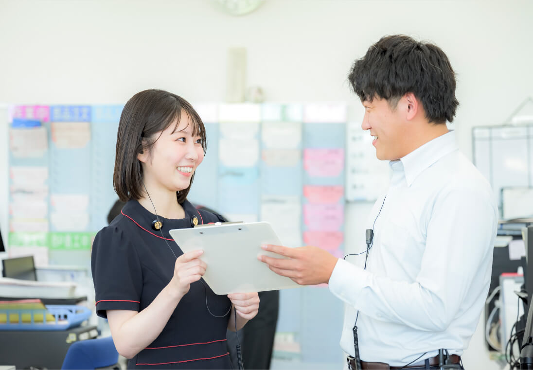 お客様との接客や社内コミュニケーションが多く求められるので、人と交流し会話することが好きな人に向いていると思います。円滑な仕事の進行には、気遣いも大切ですね。