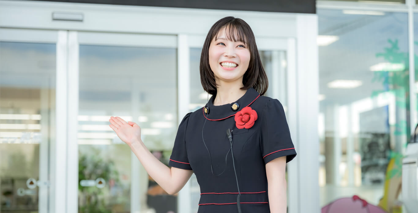 お客様の喜びを身近に感じとることができるのが、何よりのやりがいです。人生のうちでも大きな買い物である車を購入し、納車となったときのお客様の笑顔や、一生懸命接客させていただいたお客様が見せる笑顔を目の当たりにすると、私たちも「頑張って良かった」と満足できます。また、車の定期点検やセルフ洗車などで訪れるお客様から、「何年目になるの?」「最近会話や動きがスムーズですね」などと声を掛けていただいたりすることも接客の楽しさの一つですね。